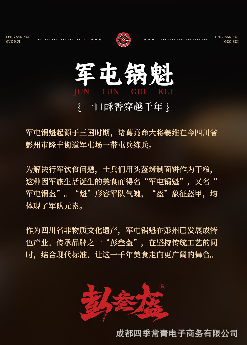 彭叁盔四川非遗传承特色食品小吃军屯锅盔锅... 当商品进行补货时,我们将以短信、邮件的形式通知您,最多发送一次,不会对您造成干扰。 |