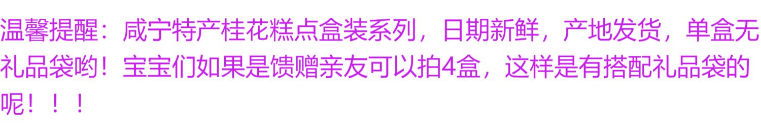 咸宁桂花糕礼盒装湖北特产传统中式桂花酥绿... 当商品进行补货时,我们将以短信、邮件的形式通知您,最多发送一次,不会对您造成干扰。 |